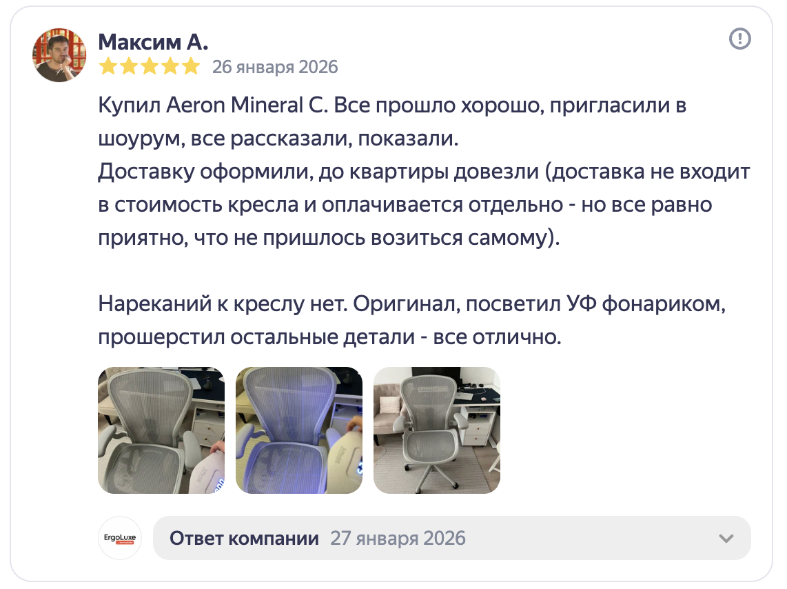 Купил Aeron Mineral C. Все прошло хорошо, пригласили в шоурум, все рассказали, показали.